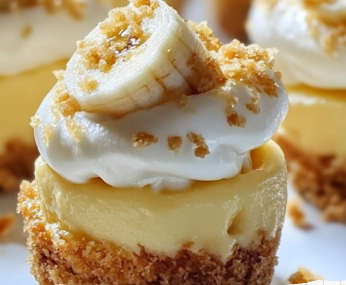 These Banana Pudding Cheesecake Bites combine the creamy richness of cheesecake with the nostalgic flavors of classic banana pudding—all in a convenient, bite-sized treat! With a vanilla wafer crust, a smooth banana cheesecake filling, and toppings of fresh banana slices and mini wafers, these little delights are perfect for parties, potlucks, or a sweet snack.