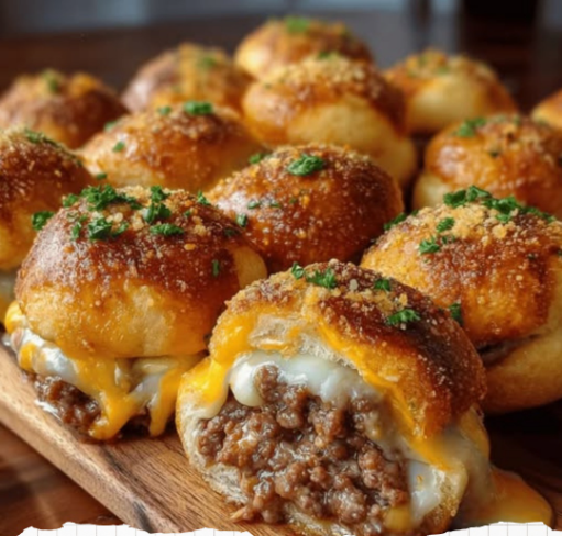 These irresistible stuffed dough balls pack all the flavors of a juicy cheeseburger—seasoned beef, melty cheese, and optional bacon or pickles—wrapped in flaky biscuit dough and brushed with a garlic-Parmesan butter glaze. Perfect for game day, parties, or a fun family dinner!