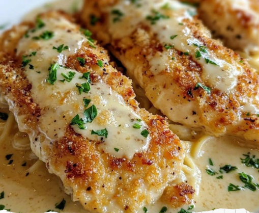 This Baked Caesar Chicken with Creamy Parmesan Pasta is the ultimate comfort meal—juicy chicken coated in zesty Caesar dressing and Parmesan, served over silky garlic-parmesan pasta. It’s easy, elegant, and packed with flavor, making it perfect for weeknight dinners or impressing guests!