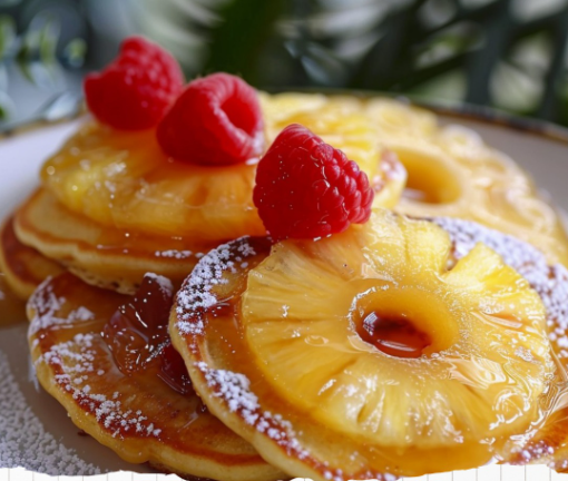 Flip your morning routine upside down! These caramelized pineapple pancakes combine the nostalgic flavors of pineapple upside-down cake with fluffy, golden pancakes. Each bite features juicy pineapple rings, sweet cherries, and a buttery brown sugar glaze—perfect for brunch or a special weekend treat.