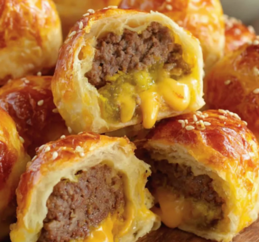 These golden, sesame-crusted rolls are stuffed with seasoned beef, melty cheese, onions, and pickles—like a deconstructed Big Mac in bite-sized form! Perfect for game day or party snacks.