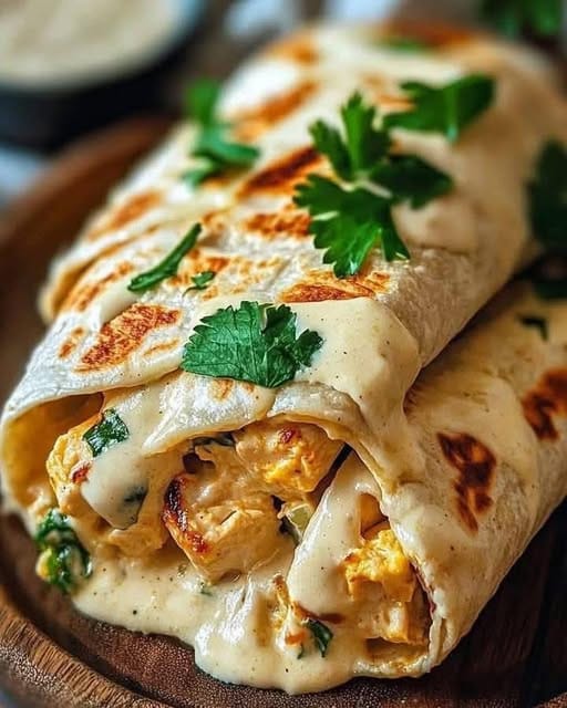 These quick, flavor-packed wraps feature tender chicken smothered in a rich garlic-parmesan cream sauce, wrapped in warm tortillas with fresh greens—ready in just 25 minutes!