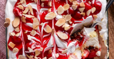 This effortless layered dessert combines fluffy angel food cake, cherry pie filling, creamy vanilla pudding, and whipped topping—no baking required!…