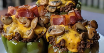 Mushroom BBQ Turkey Bacon Cheeseburger Stuffed Peppers