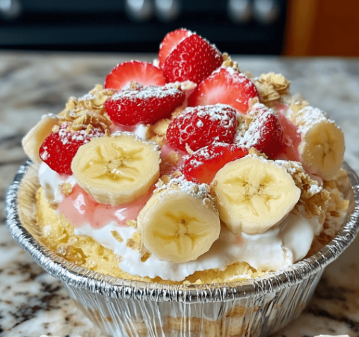 Layers of creamy cheesecake pudding, fresh strawberries, sweet bananas, and crunchy vanilla wafers create the ultimate no-bake dessert that’s both nostalgic and decadent.