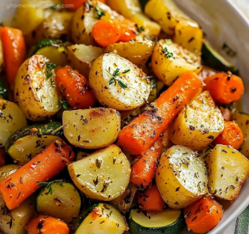 This herb-roasted vegetable medley is the ultimate easy side dish—crispy potatoes, tender carrots, and zucchini infused with garlic, thyme, and rosemary. It’s naturally gluten-free, vegan-friendly, and packed with flavor, making it a versatile pairing for meats, fish, or even as a standalone meal.