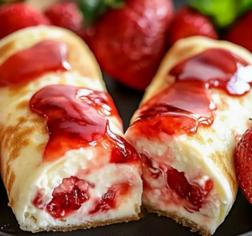 Crispy Fried Tortillas Stuffed with Creamy Cheesecake & Fresh Strawberries