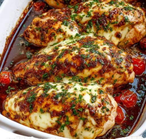 A juicy, flavorful chicken dish with sweet balsamic glaze, melted mozzarella, and roasted cherry tomatoes—ready in 30 minutes for an easy yet elegant meal!