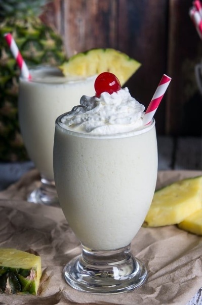 1. Add coconut milk, pineapple juice, frozen pineapple, yogurt, ice, and rum extract to a blender.