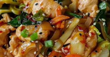 🍳🔥 Crisp, Colorful & Ready in 20 Minutes! This quick stir-fry pairs tender chicken strips with crunchy cabbage, sweet peppers,…