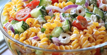 🌈 A Vibrant, Crunchy & Creamy Crowd-Pleaser! This Rainbow Pasta Salad is a showstopping side dish—layers of colorful veggies, tender…