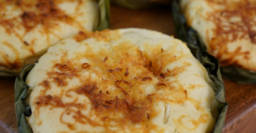 A fluffy, fragrant Filipino rice cake baked in banana leaves with coconut cream, melted butter, and cheesy topping—perfect for breakfast,…