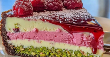 Elegant Pistachio Raspberry Crunch Cheesecake