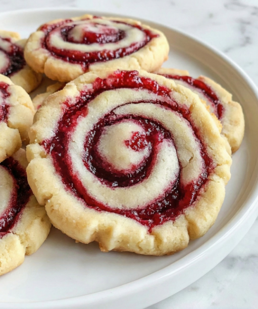 In the world of baking, few things are as satisfying as creating a treat that is both visually stunning and profoundly delicious. These Buttery Raspberry Swirl Shortbread Cookies are precisely that—a perfect harmony of rich, tender shortbread and bright, tangy raspberry jam, all swirled into a mesmerizing pinwheel design. They look like they came from the case of a patisserie, yet their secret lies in a simple, forgiving “slice-and-bake” technique. This recipe is more than just a list of ingredients; it’s an invitation to experience the joy of creating edible art. It proves that with a little patience and a few pro tips, you can transform basic pantry staples into a cookie that is as impressive to look at as it is impossible to resist.