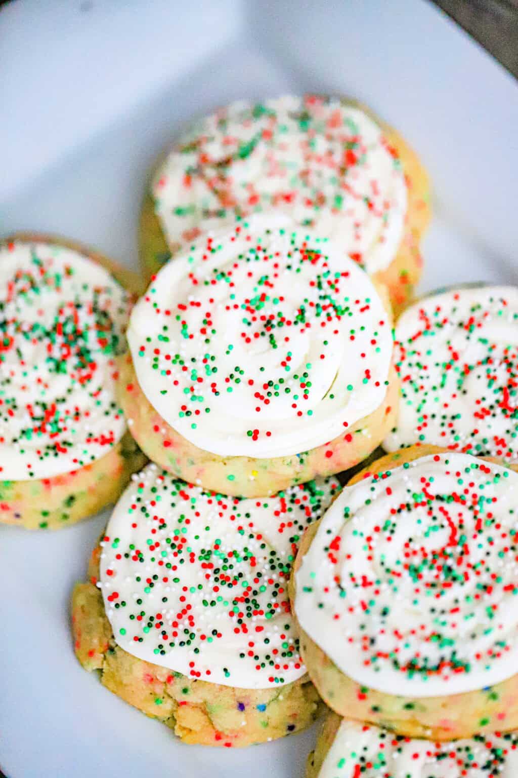 These iconic holiday cookies boast an incredibly soft, thick base and a sweet, fluffy vanilla frosting, all dressed up with festive sprinkles.